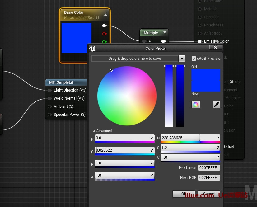 双击以打开每个材质,然后单击“基础颜色”节点以调出色轮以更改颜色。保存并关闭每个新材料