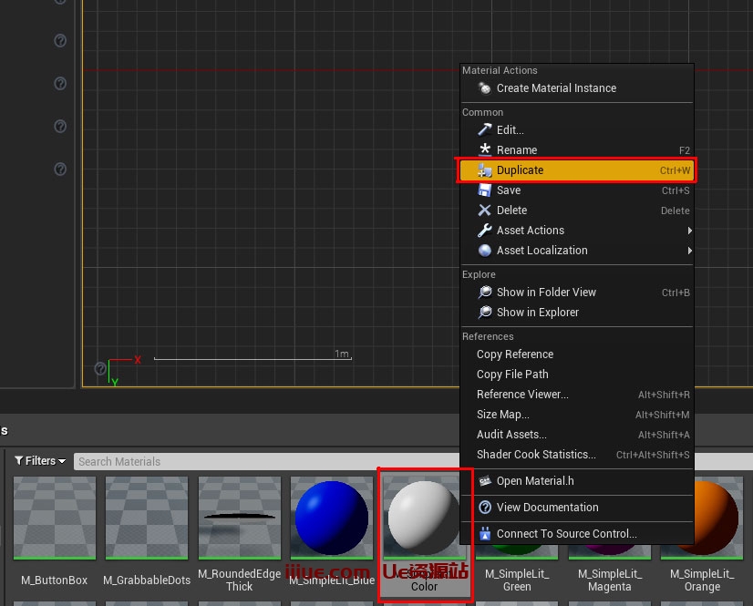 由于您安装了UX工具,因此您可以转到“材料”文件夹并复制M_SimpleLit_Color 4次,使用要更改的颜色重命名它们。例如材料蓝色,材料橙色,材料粉红色,材料绿色。