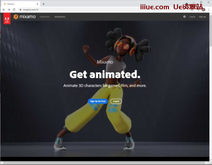 转到 Mixamo 如果您已经有一个帐户,请登录,如果没有,请注册,因为它是免费的。