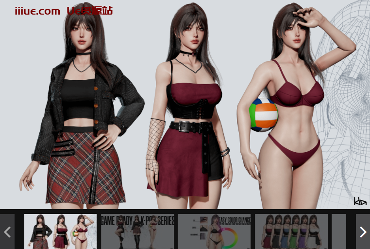 可爱的K-pop女孩Ryu的3d模型。她有 3 种不同的服装,A***t 混合形状,人形装备,多种颜色选择。她将成为跳舞、唱歌或约会游戏的完美角色。